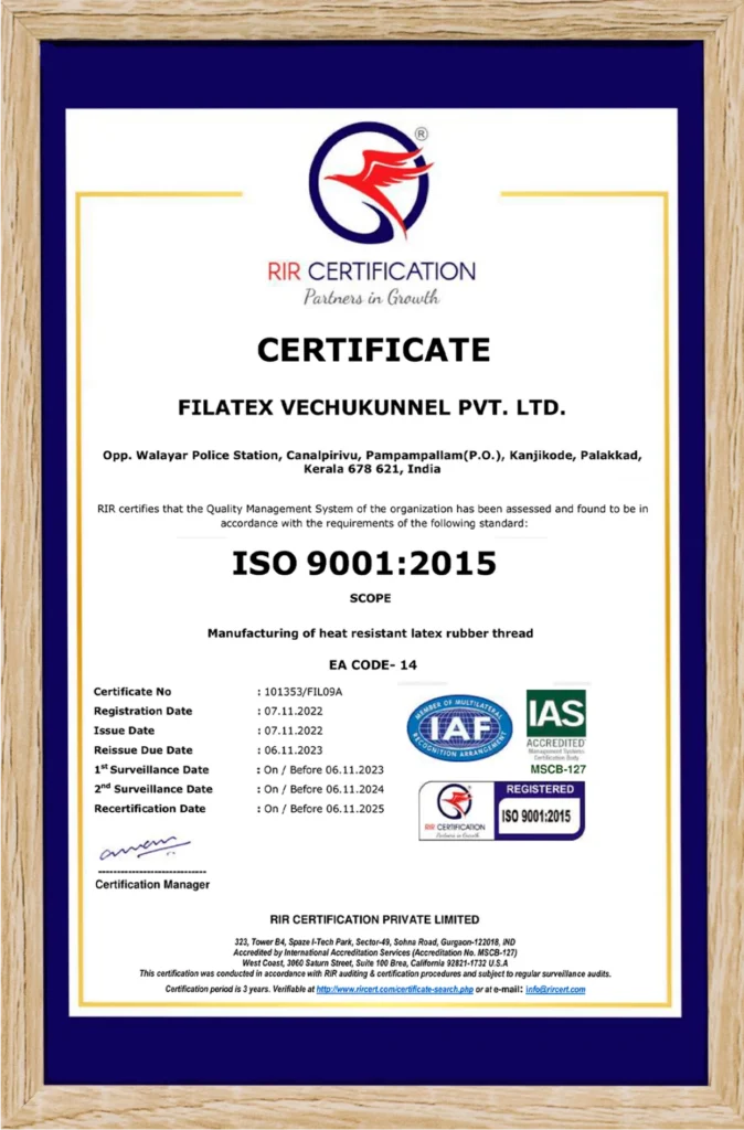 Filatex is committed to delivering top-quality products to our valued customers, a testament to our unwavering dedication to customer satisfaction since our establishment in 1960. Our factories hold ISO 9001: 2015 certification, and our products are certified with Oeko-Tex® Standard 100, the leading label for textile safety.